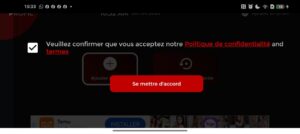 Au premier lancement, l’application vous demandera d’accepter la politique de confidentialité et les conditions d’utilisation.